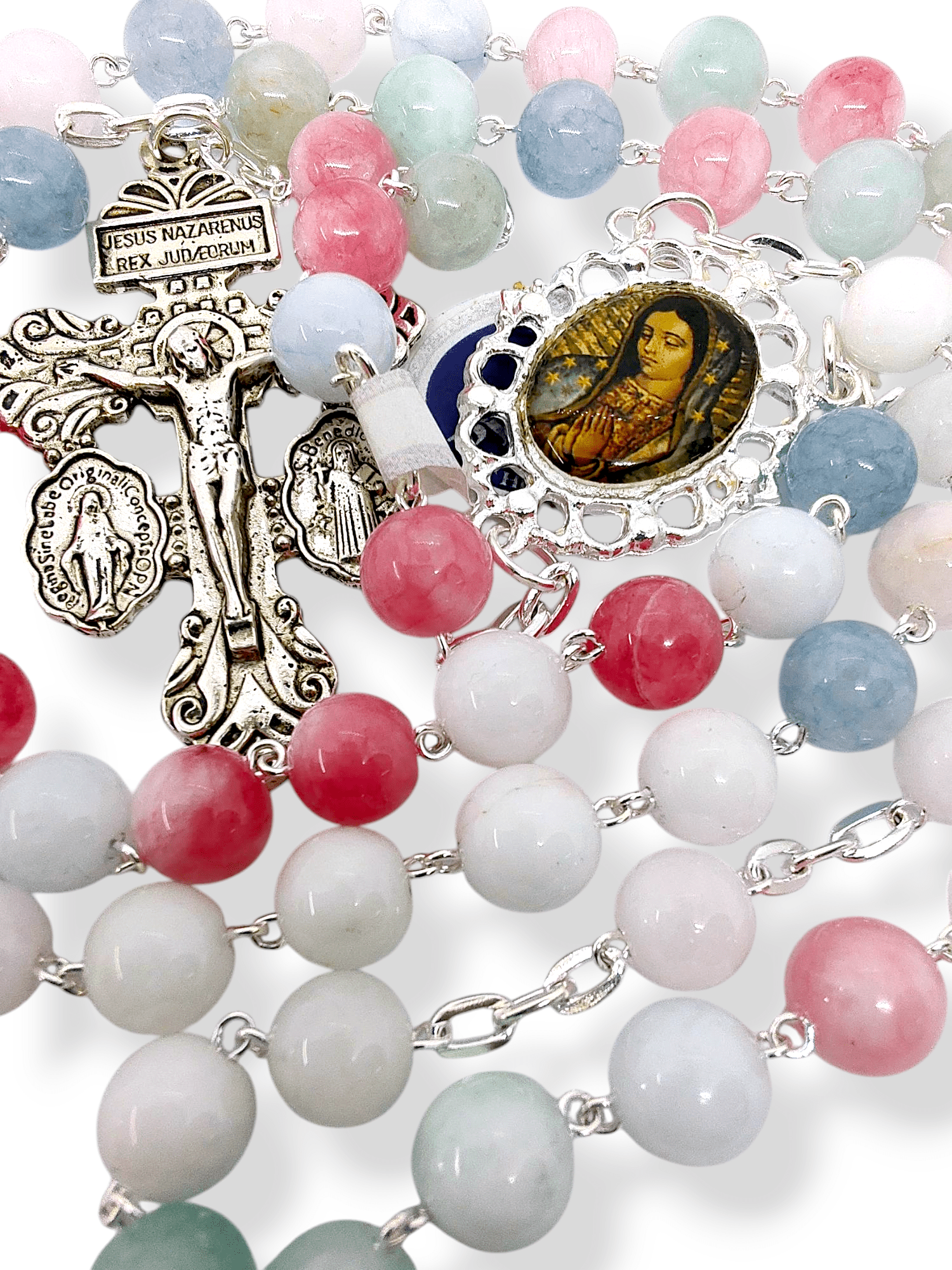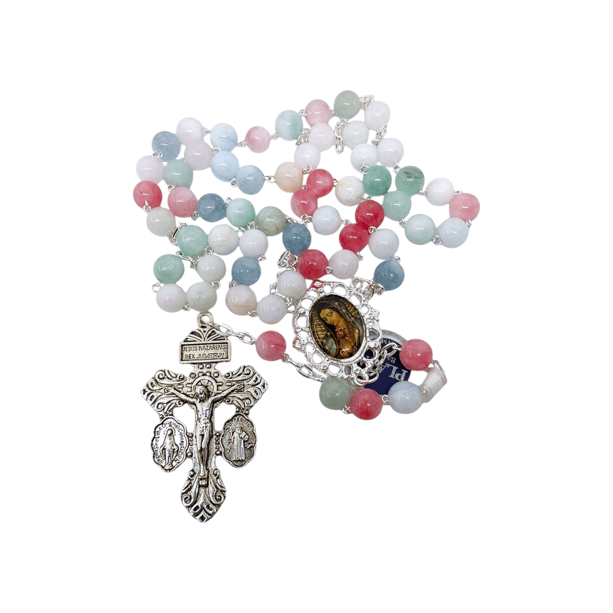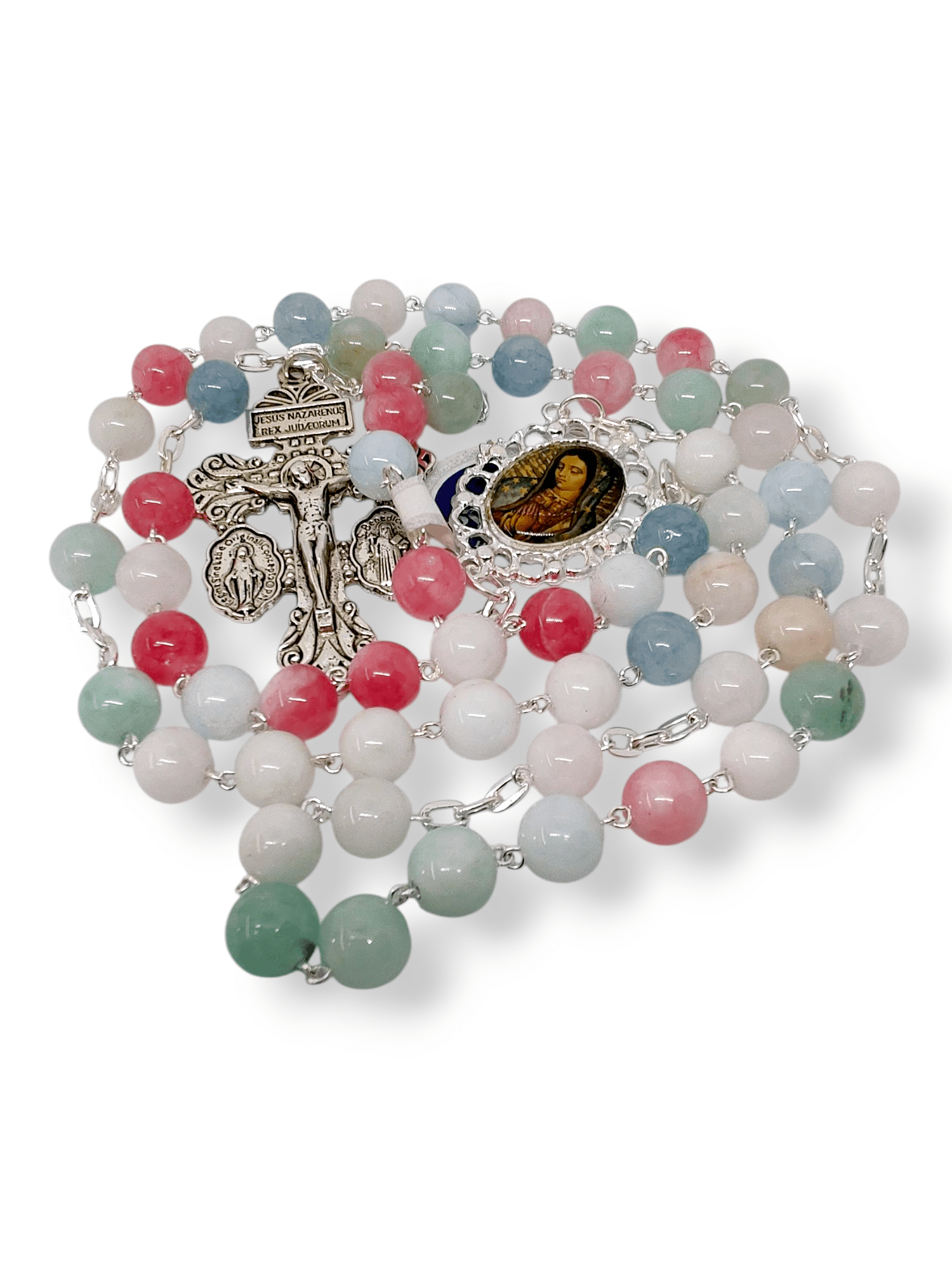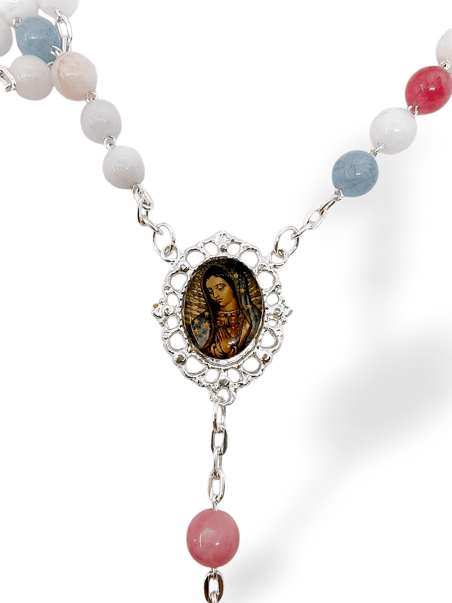Rosario Ágata Multicolor Medalla Virgen De Guadalupe
